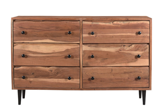 63" Brown Solid Wood Six Drawer Dresser