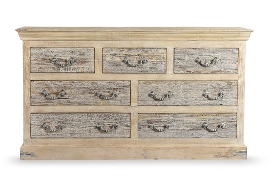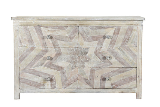 57" White Wash Solid Wood Six Drawer Double Dresser