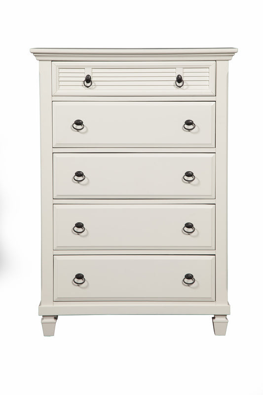 38" White Solid Wood Five Drawer Chest