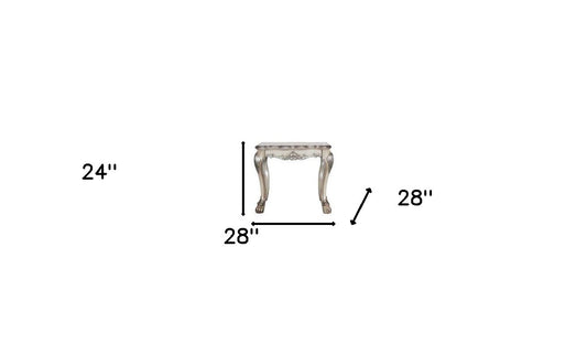 26" Antiqued Platinum Manufactured Wood And Polyresin Scroll Square End Table