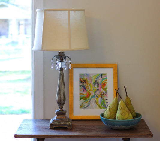 12" Vintage Gold Oval Smocked Pleat Paperback Shantung Lampshade