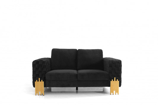 Stylish 69" Black Velvet And Gold Accent Loveseat