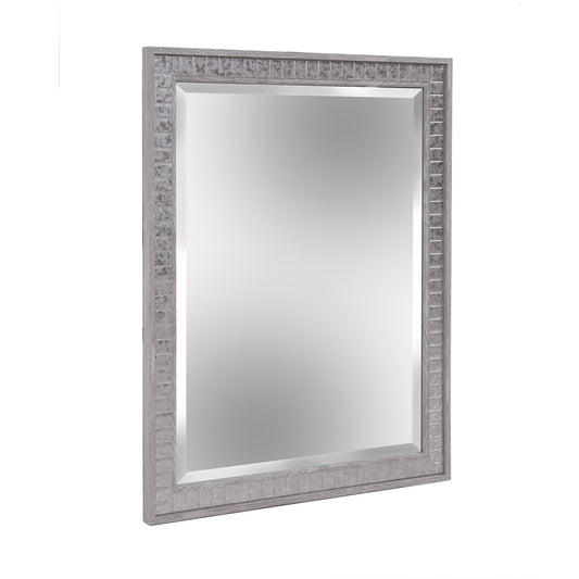 Gray Embossed Faux Wood Rectangular Mirror