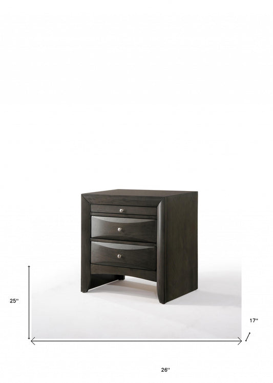 16" Gray Wash Two Drawer Nightstand With Solid Wood Top