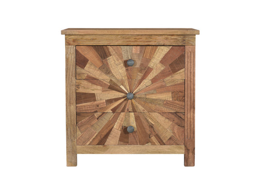 30" Brown Three Drawer Starburst Pattern Solid Wood Nightstand