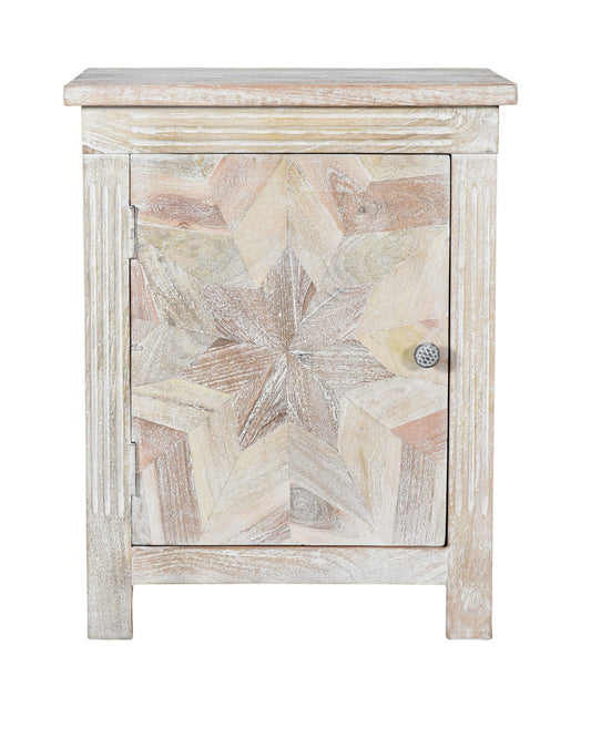 28" Distressed White Starburst Geometric Solid Wood Nightstand