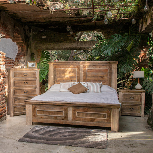 30" Distressed White Three Drawer Starburst Pattern Solid Wood Nightstand