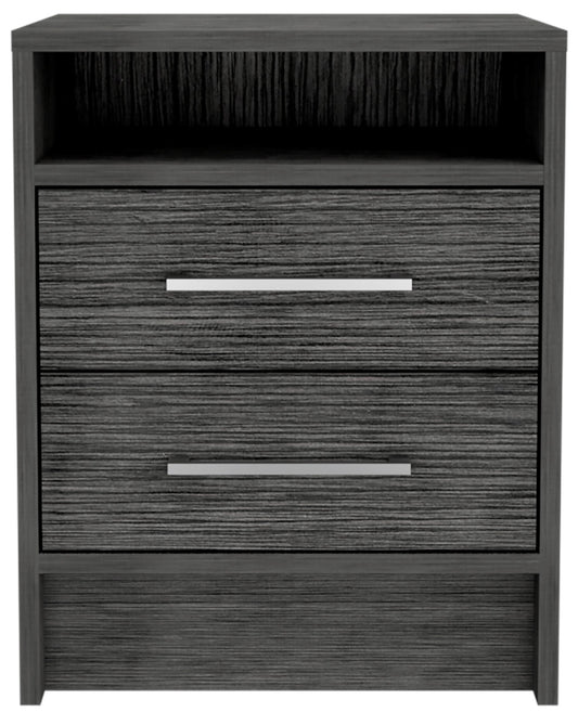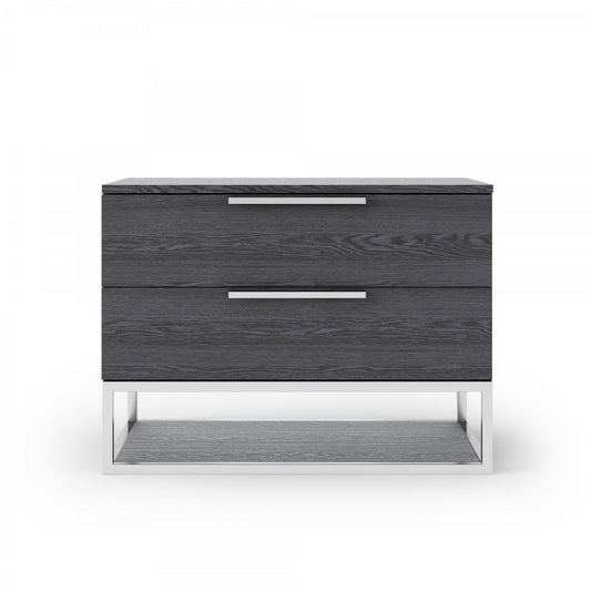 Modern Gray and Stainless Steel Nightstand With Two Drawers