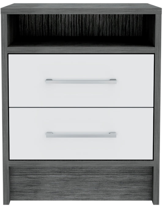 Stylish Smokey Oak and White Two Drawer Nightstand
