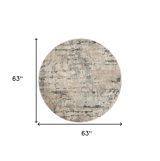 5' X 5' Beige And Grey Round Abstract Power Loom Non Skid Area Rug