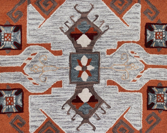6’ Round Rustic Red Scalloped Edge Area Rug