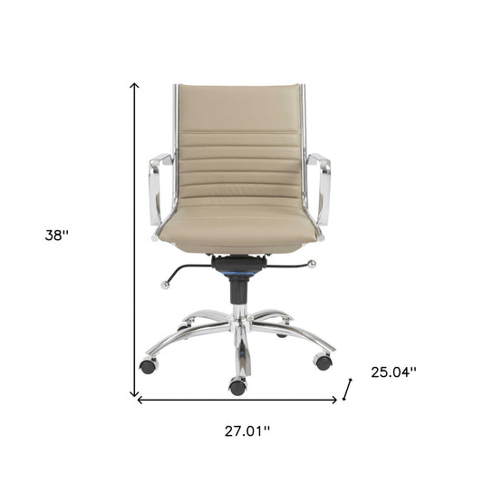 Taupe Faux Leather Seat Swivel Adjustable Task Chair Leather Back Steel Frame