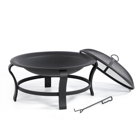 26" Black Steel Wood Burning Round Fire Pit