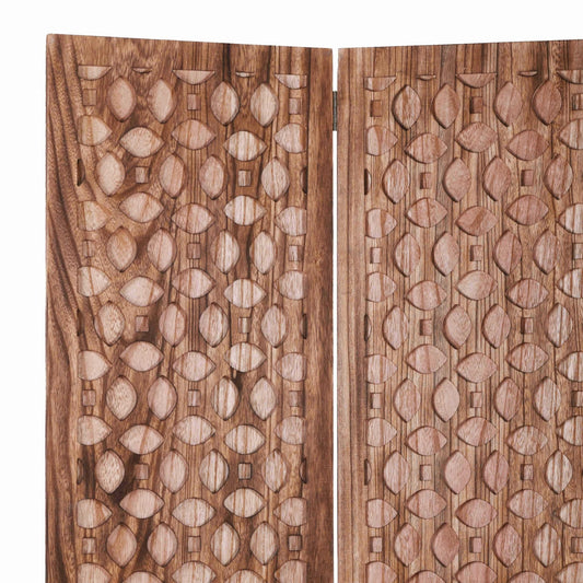 Stunning Carved Brown Wood Room Divider Screen