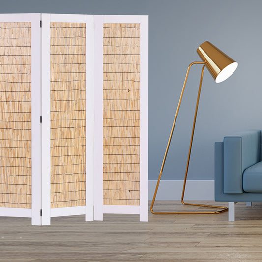 White And Natural Three Panel Room Divider Screen