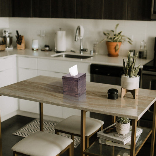 Set of 2 Rustic White Mango Wood Square Tissue Holders