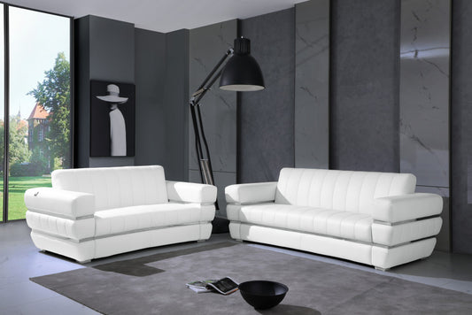 Two Piece Indoor White Italian Leather Five Person Seating Set