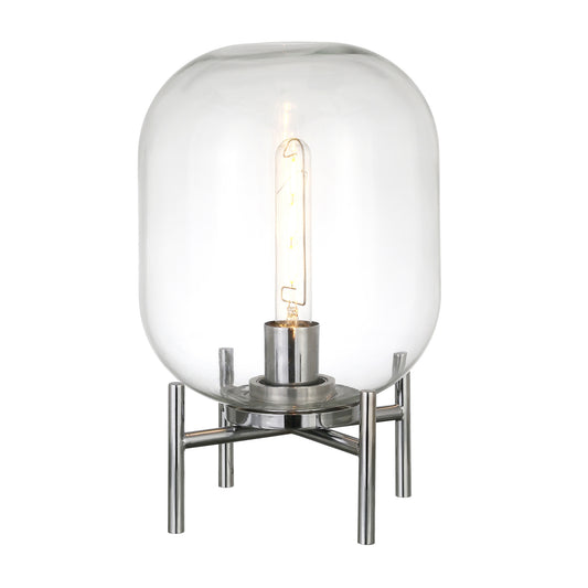 15" Nickel Metal Table Lamp With Clear Cylinder Shade