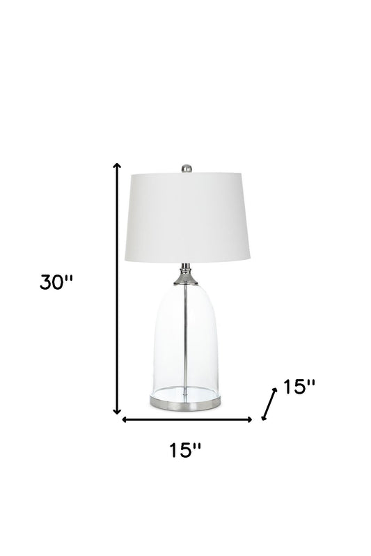 Set of Two 30" Transparent Glass Table Lamps With White Shade