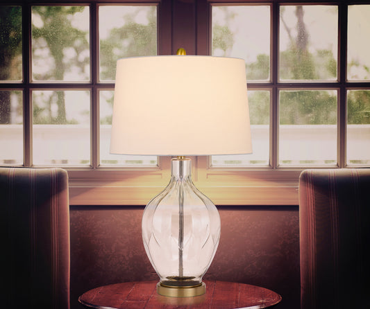 27" Clear Glass LED Table Lamp With Gray Drum Shade