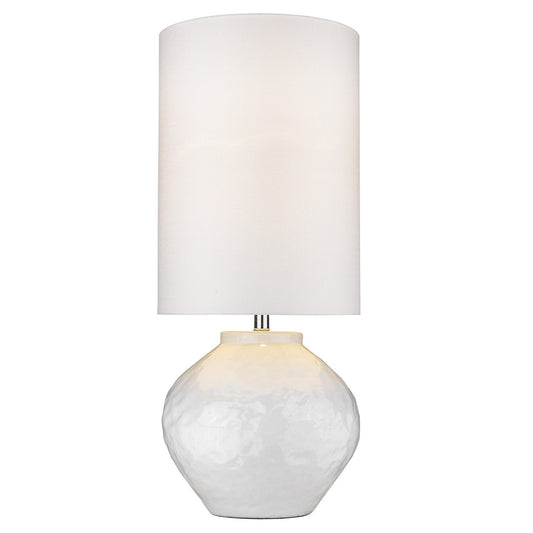 22" White Ceramic Column Table Lamp With White Drum Shade