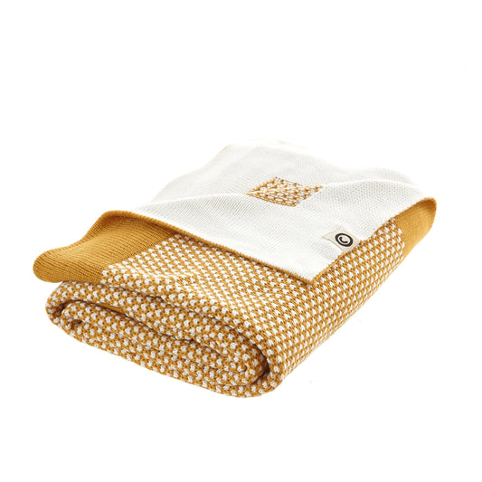 Yellow Knitted Acrylic Polka Dots Throw Blanket