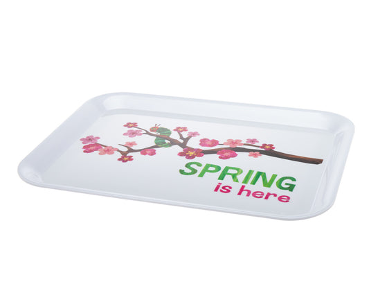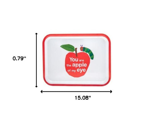 15" Red and White Rectangular Melamine Indoor Outdoor Serving Tray