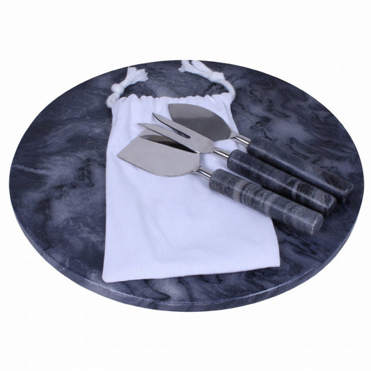 White Round Marble Handmade Cheese Board With Cheese Knives