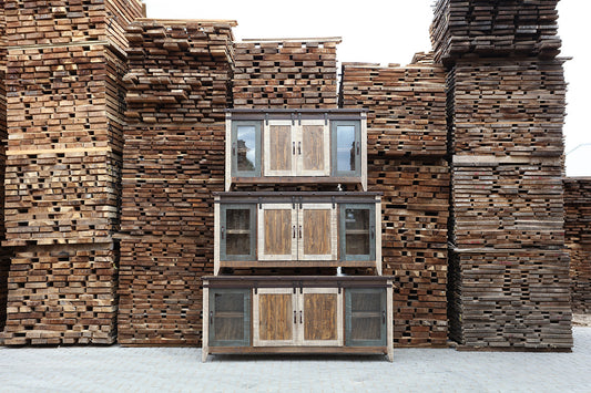 80" Gray Solid Wood Cabinet Enclosed Storage Distressed TV Stand