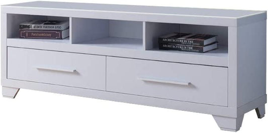 60" White Particle Board And Mdf Cabinet Enclosed Storage TV Stand