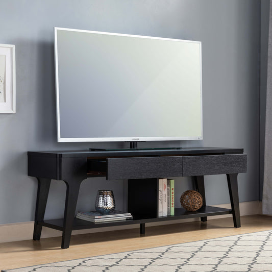 59" Brown And Black Particle Board Open Shelving TV Stand