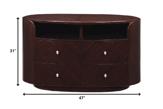 50" Medium Brown Wood Curved Edge Enclosed Storage TV Stand