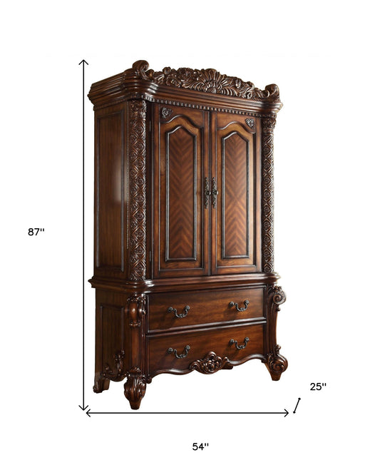 52" Brown Wood And Manufactured Cabinet Enclosed Storage TV Stand