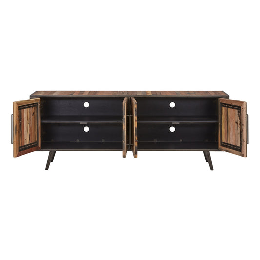 79" Wood Brown Recycled Boat Wood And Iron Cabinet Enclosed Storage TV Stand