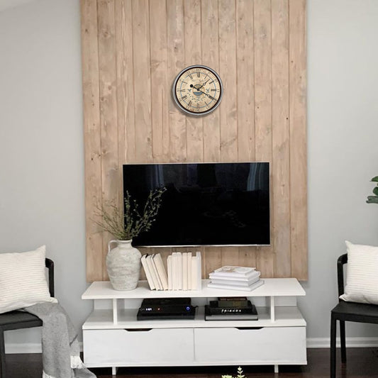 18" Circle Black Wood and Solid Wood Analog Wall Clock