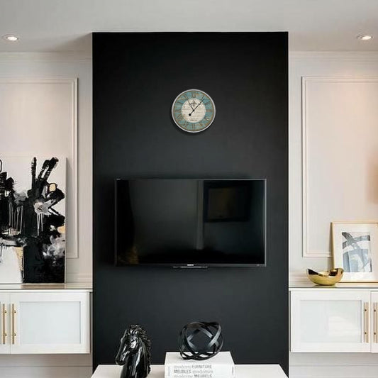 18" Vintage Teal Fleur de Lis Parisian Wall Clock