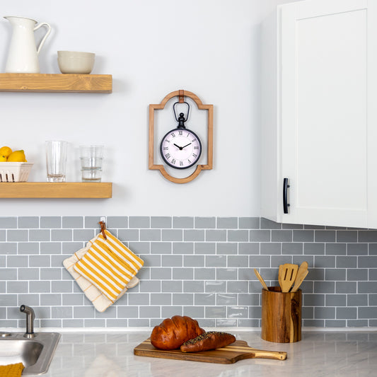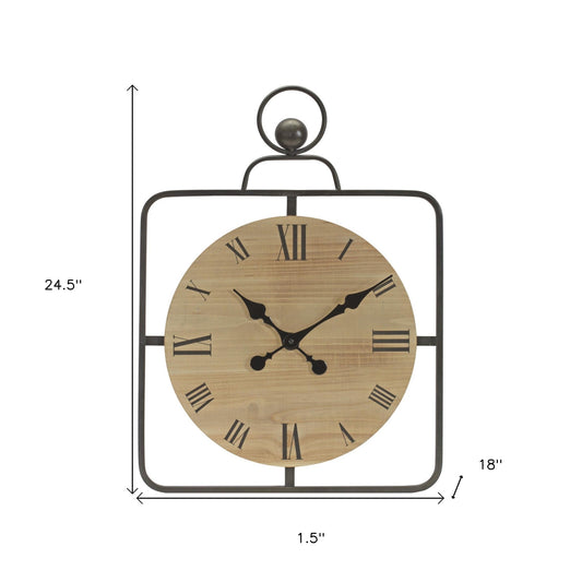 18" Square Brown and Black Wood and Solid Wood Analog Wall Clock