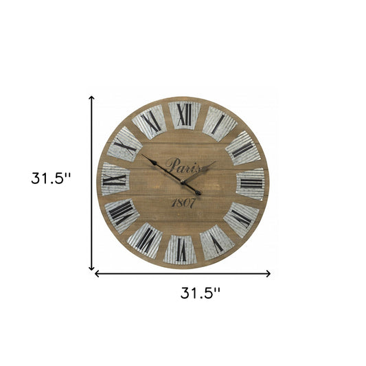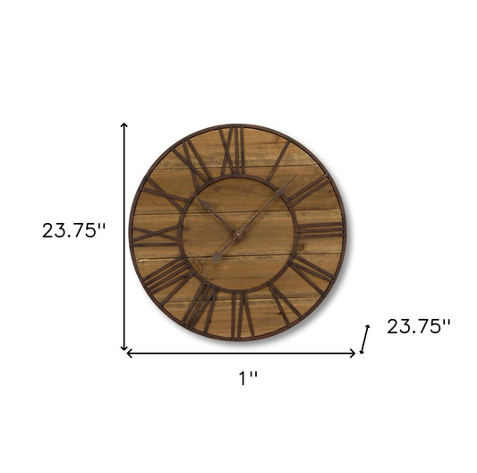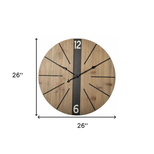 20" Circle Black Wood and Solid Wood Analog Wall Clock