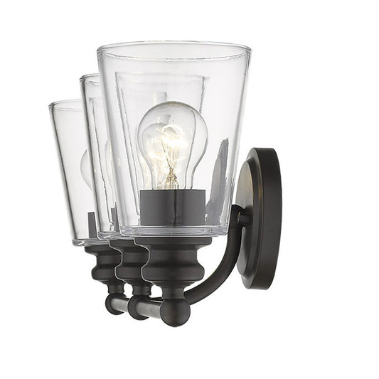Three Light Bronze Wall Light with Tapered Glass Shade