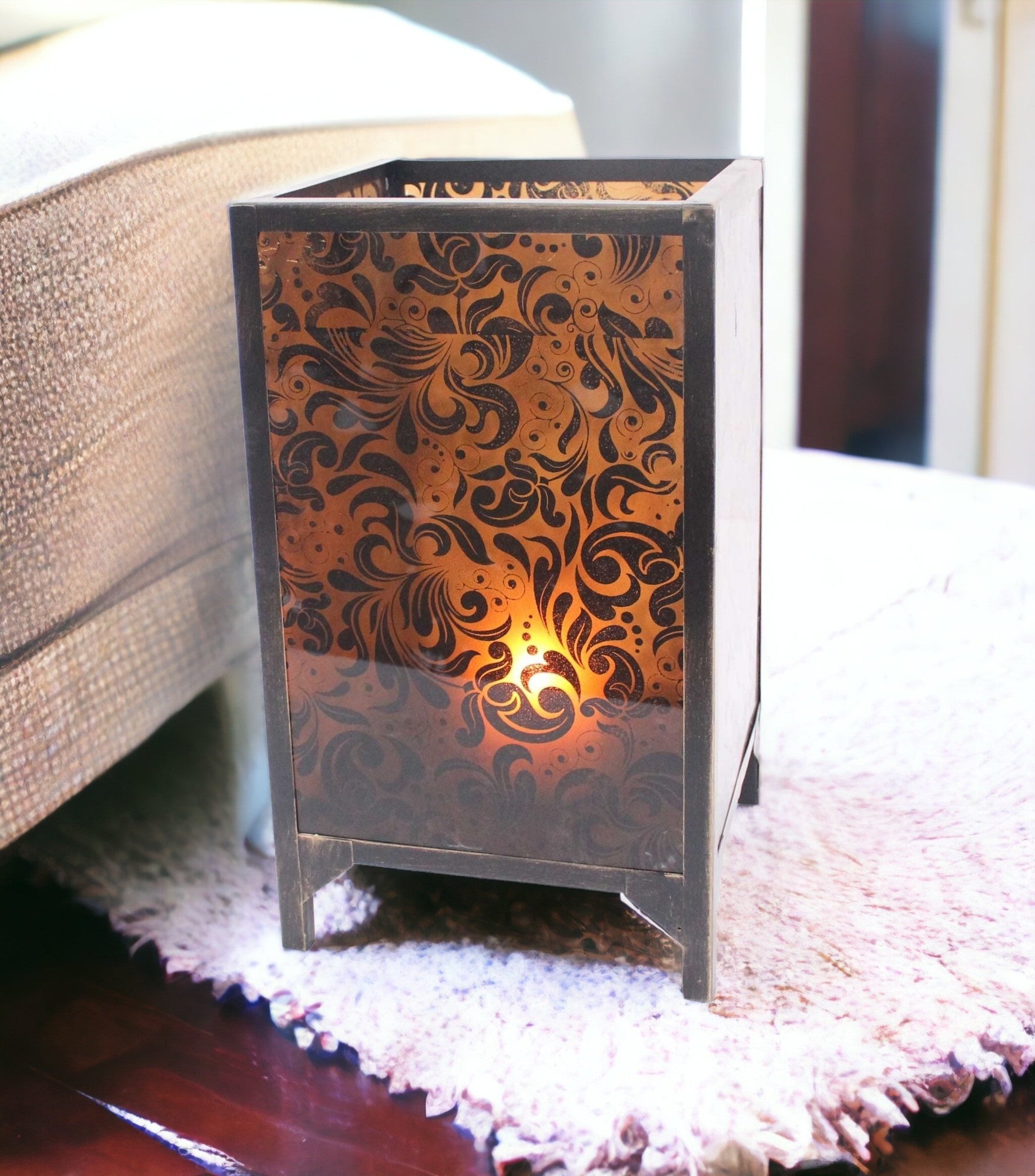 10.25 X 10.25 X 18 Brown Vintage Floral Pattern - Candle Holder