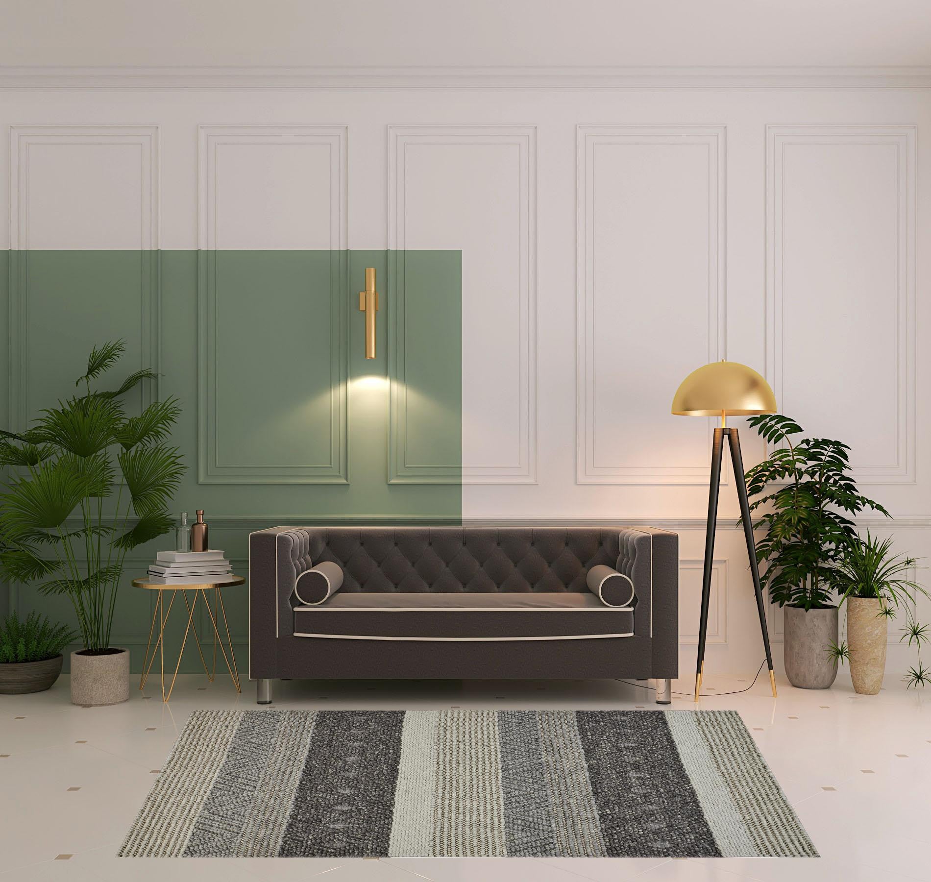 Add great coloration and comfortable texture to your space with this 8' x 11' gray taupe and tan wool striped hand woven stain resistant area rug. This rectangle shaped rug features a striped design in gray taupe and tan to give it visual interest. A classic shape marries with good looking design for your space Ideal for spaces with kids and pets, this rug is stain resistant to help repel stains and spilled liquids. Crafted by skilled artisans, this hand woven rug is genuine and unique. No two will be exactly alike. Place this area rug against a hardwood or tile floor and it will enliven your living space with style and sophistication. 0.68" H x 96" W x 132" D