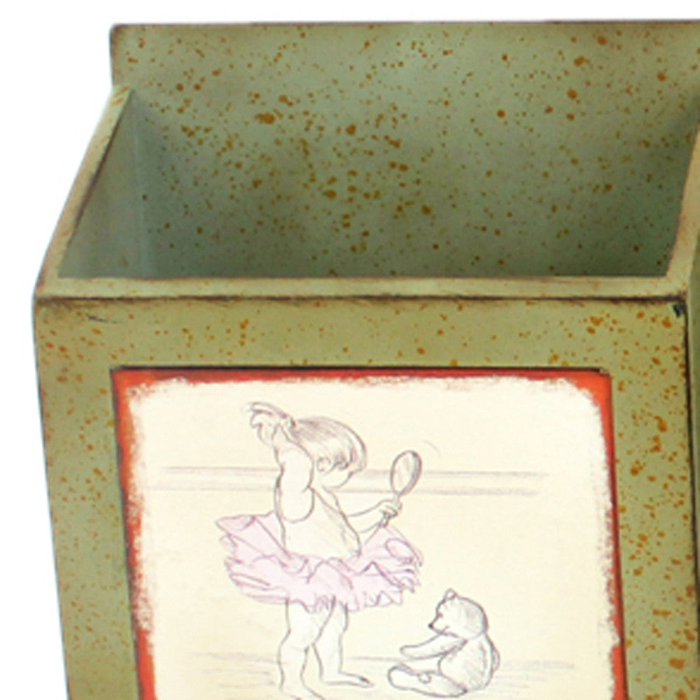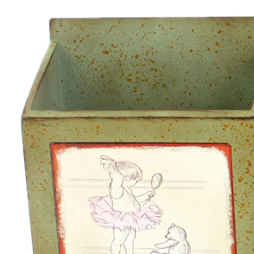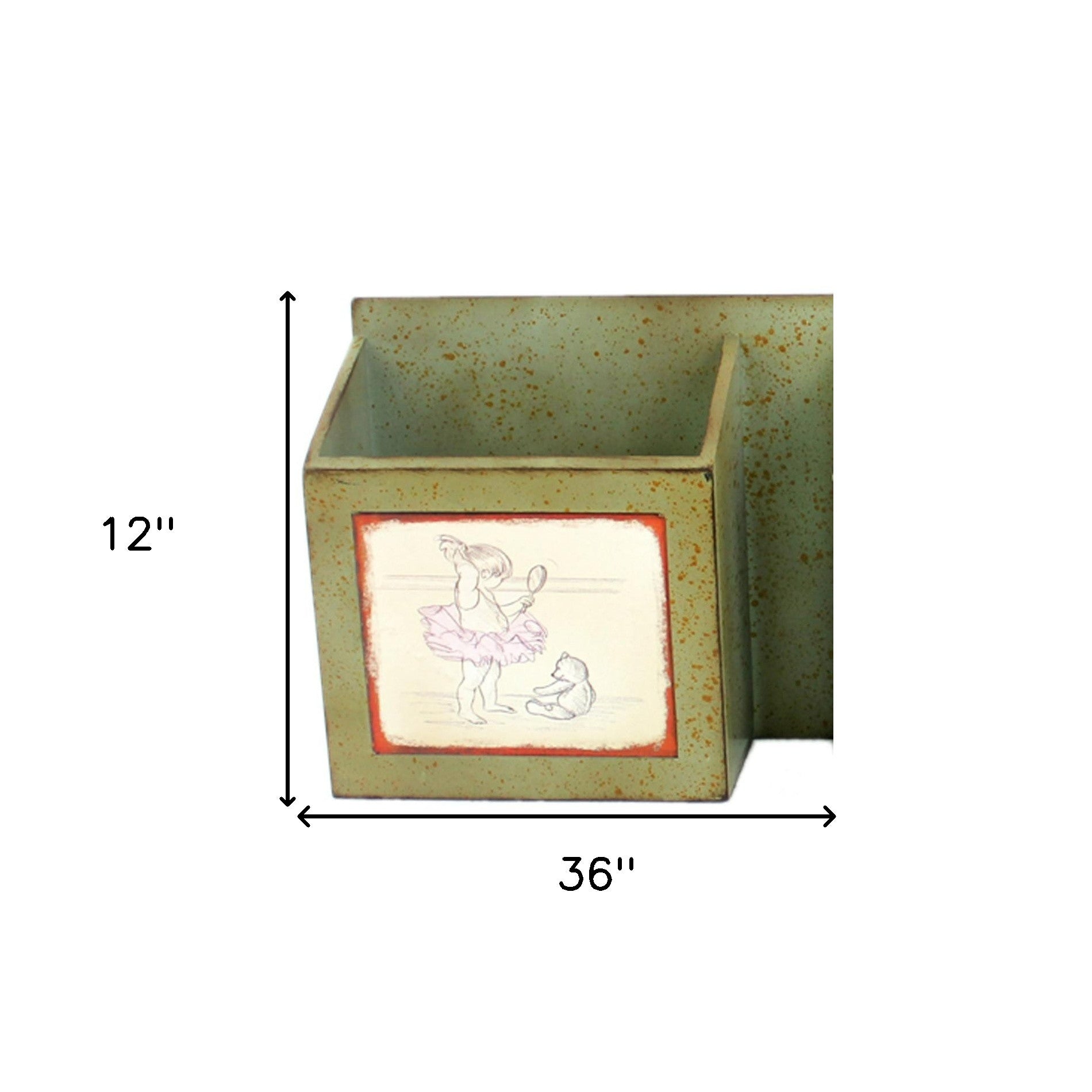This is pure creativity mixed with artistic styling employed to carve this vintage inspired piece. This newspaper and magazine rack features a traditional pattern with strong touch of distressed handcraft. Interestingly, it comes with sectioned storage boxes for clutter collection and two metal hooks on the back for easy hanging on the wall. With this masterpiece, you have a beautiful collection of your favorite news items well collated. - Rustic collection - Green finish - Horizontal hanging - Decorated with decals of a girl playing with her toy - Two metal hooks mounted on the back for hanging on the wall