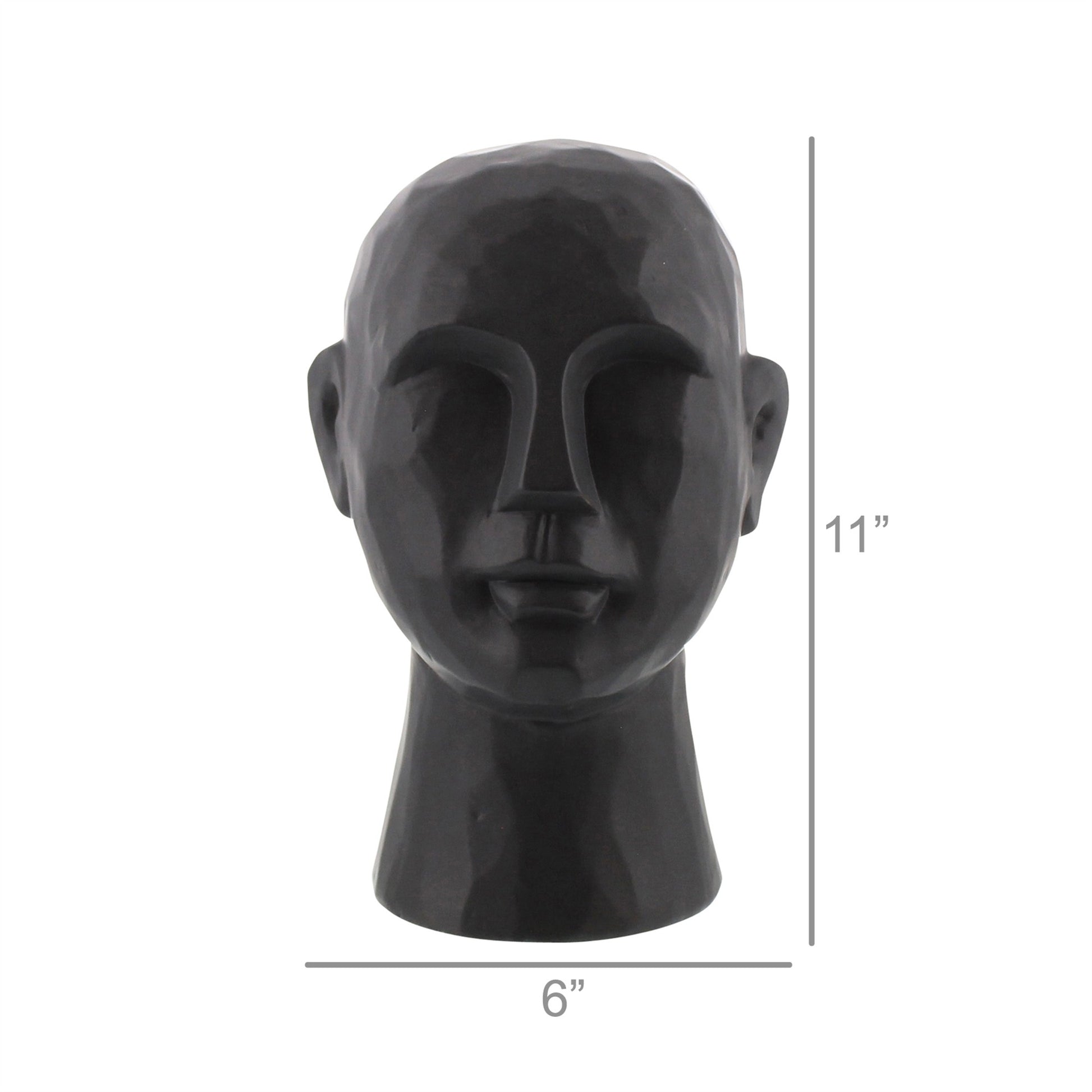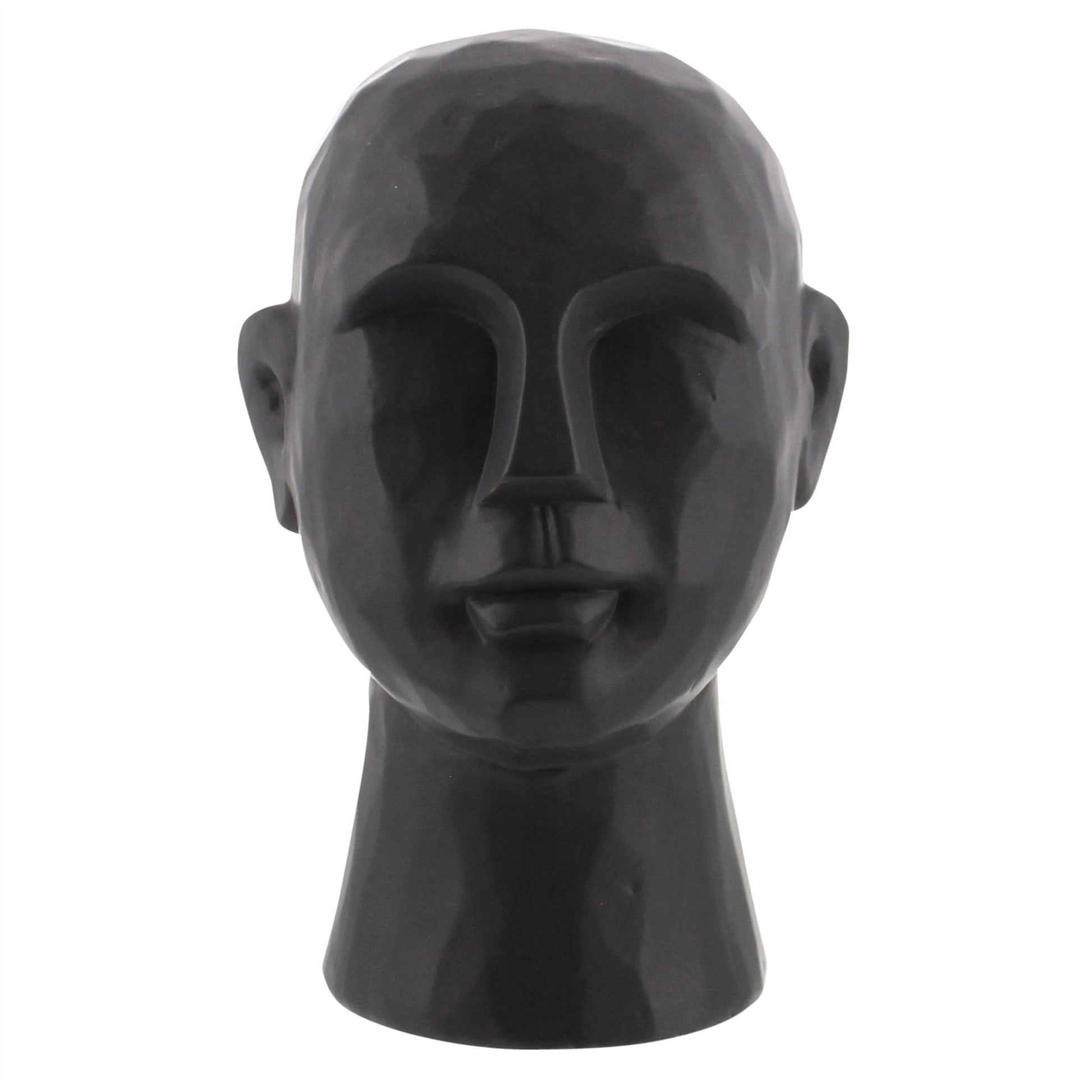 Adorn your space with this with 11" Matte Black Ceramic Bust Decorative Sculpture to add something unique and updated to your decor. You will make a bold statement with this decorative accent. The chiseled geometric features of this artistic ceramic bust will lend a mindful expression to your desk, bookshelf, mantle, or console table. 11" x 6.5" x 6'.5"