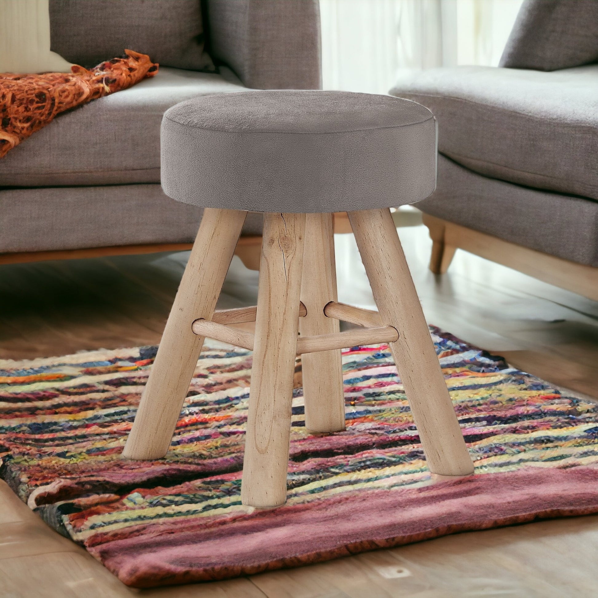 Practicality and fashion mix together with this handy 12" brown velvet and natural round ottoman. A natural solid wood frame is finished off with a brown upholstery seat that is the epitome of quality construction and design. Expertly upholstered with padding in a soft solid color velvet, this ottoman is as comfortable as it is good looking. Ottomans are multi-functional additions to your space that add fashion and practical value. 16.25" H x 12.25" W x 12.25" D