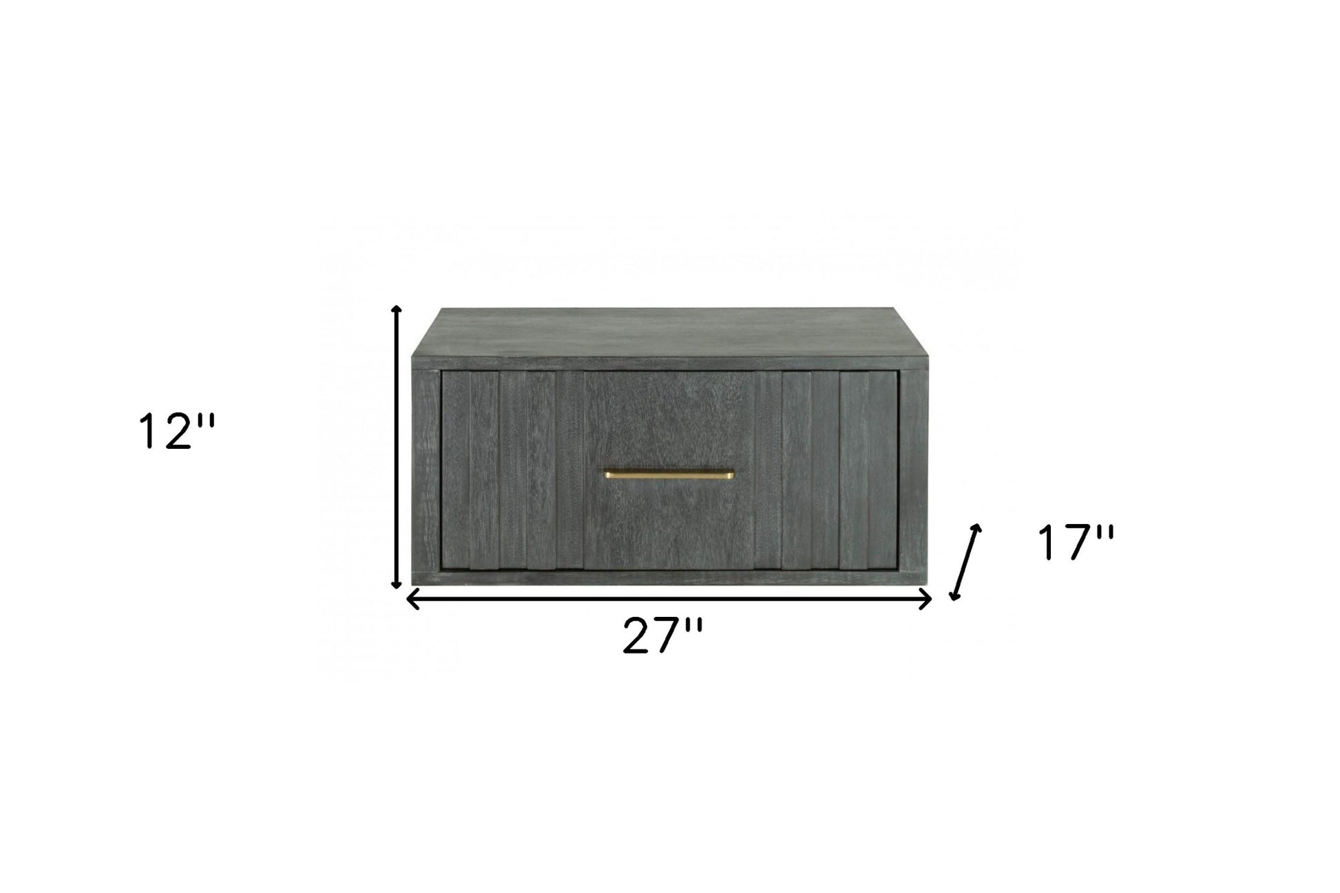 Give your room the look and feel of 5-star accommodations with this 12-inch gray one drawer nightstand. Sturdy and durable construction from solid + manufactured wood ensures this trusty bedside table is built to last. The easy open drawer allows you hidden storage to keep your essentials close at hand. The unsung hero of the bedroom, this nightstand is perfect for keeping a glass of water, lamp, alarm clock, jewelry, and more, close by and easily accessible. Look no further than this nightstand to accommodate all your needs and upgrade the style of your bedroom. 12-inch H x 27-inch W x 17-inch D