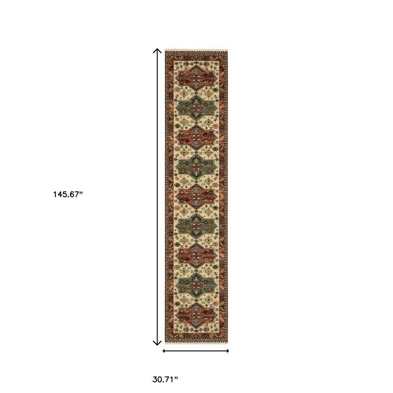 12' Red and Ivory Oriental Power Loom Runner Rug