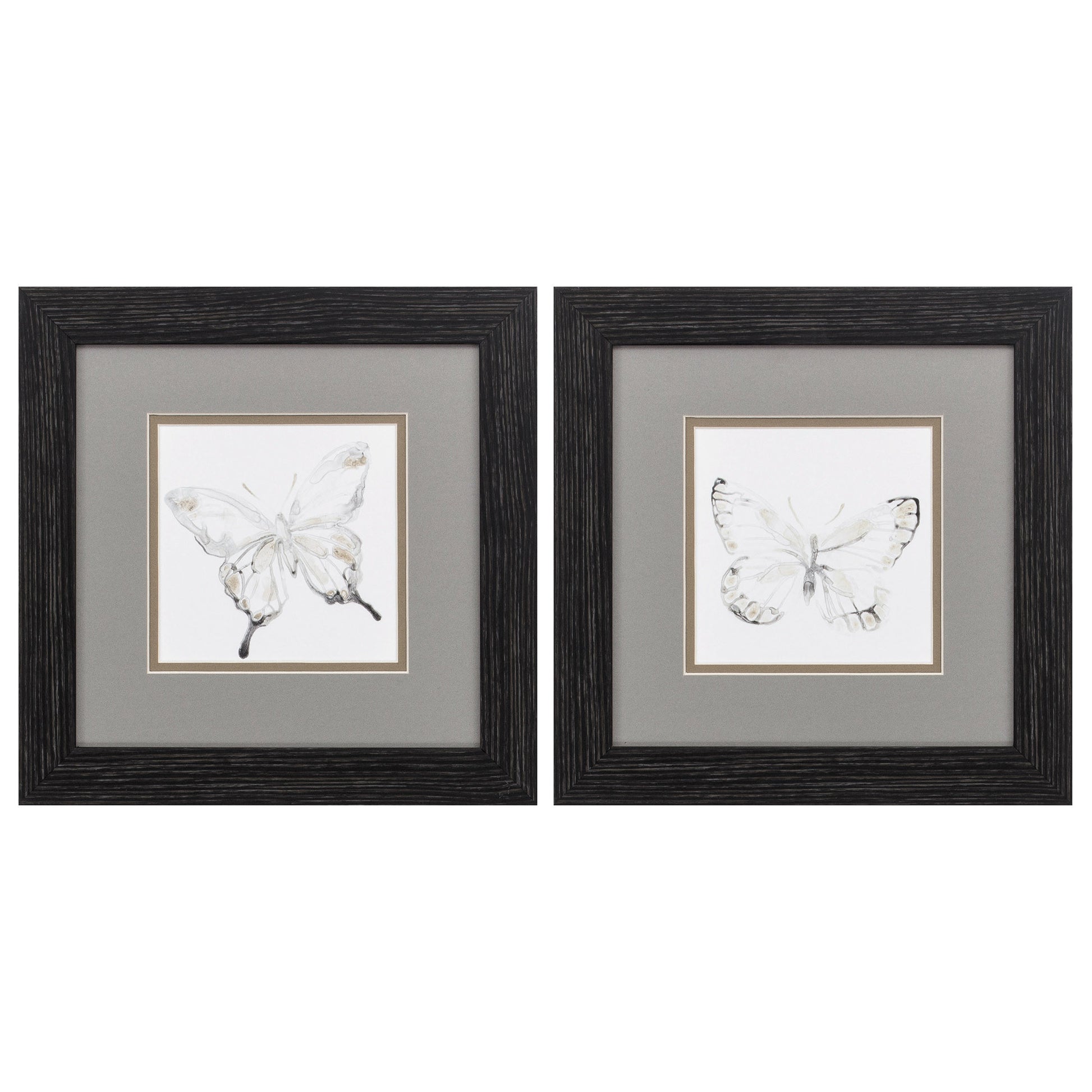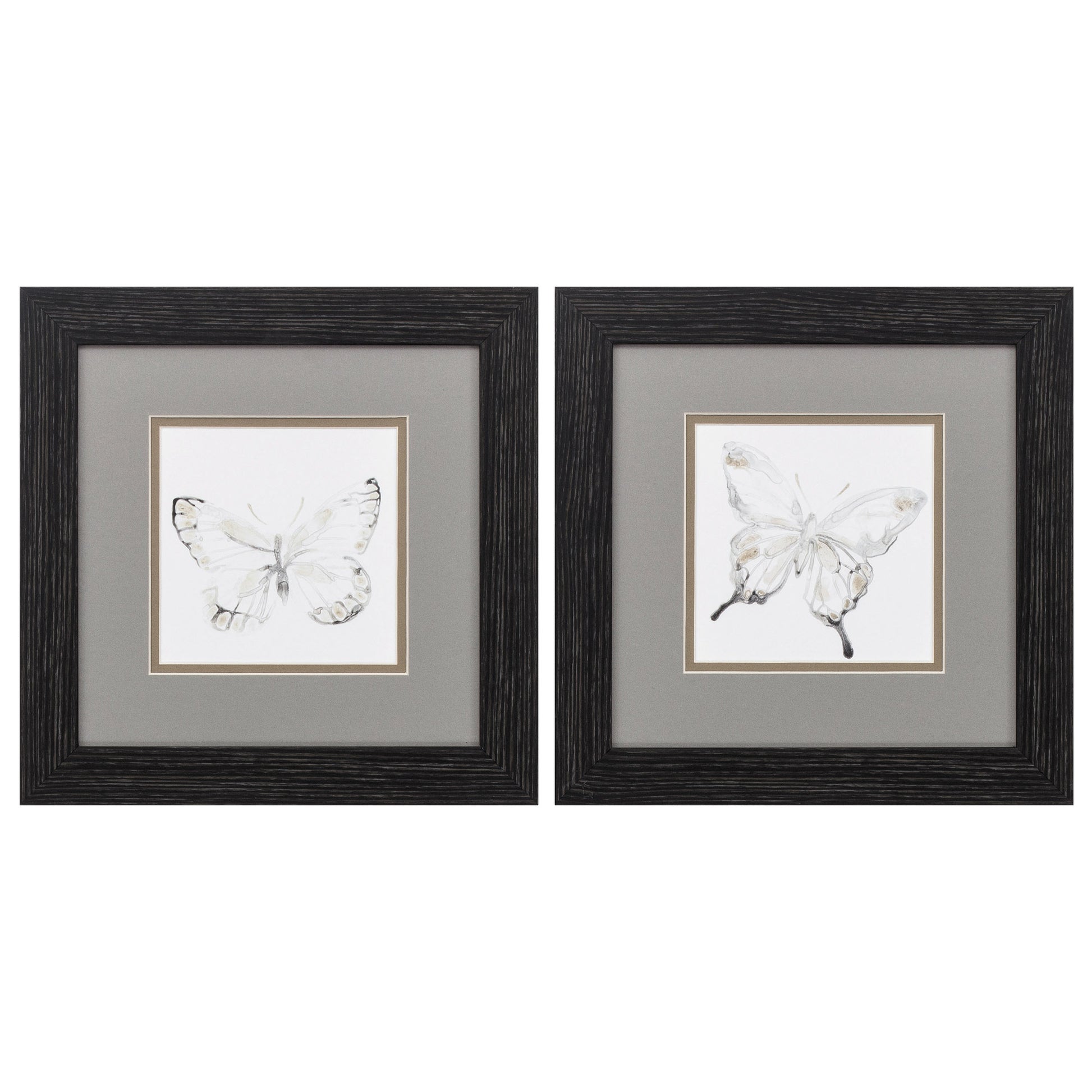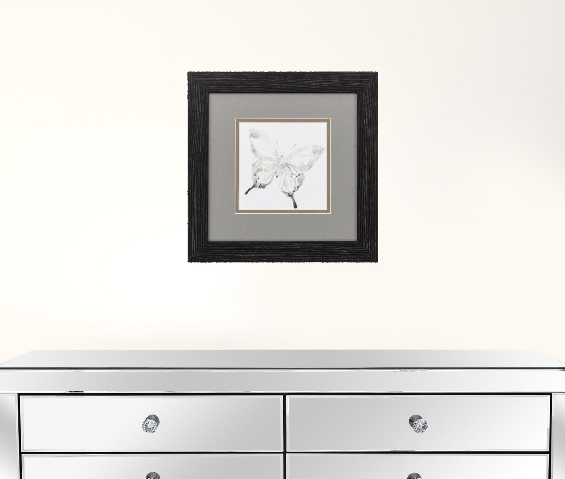 12" X 12" Distressed Black Frame Butterfly Impression (Set Of 2)