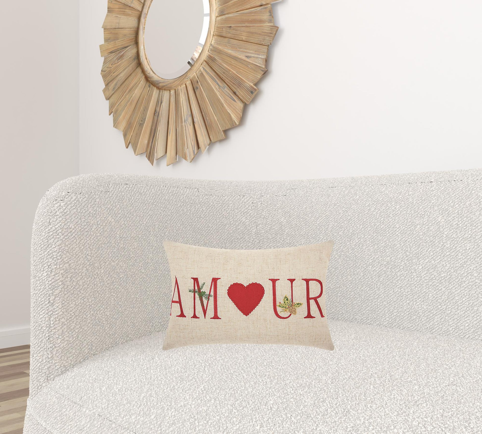12" X 18" Natural Zippered Polyester Christmas Throw Pillow