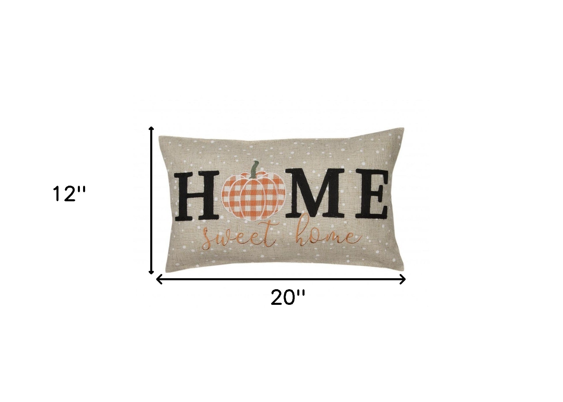 Set a festive fall mood with this cozy and fun 12-inch x 20-inch beige and orange thanksgiving pumpkin linen blend zippered pillow with embroidery. This beige and orange colored decorative pillow is made from high grade linen blend that is durable and long lasting. Super soft and built to hold its shape, this polyfill pillow is a great option. Emblazoned with the text home sweet home this pillow adds some visual interest and decor to your space. Decorative throw pillows not only add color and dimension to your space but can be comfy and supportive when you are lounging and cuddling as well. A great decorative accessory for your favorite chair, to accent your sofa, or to use as part of your bed ensemble. 12-inch H x 20-inch W x 4-inch D
