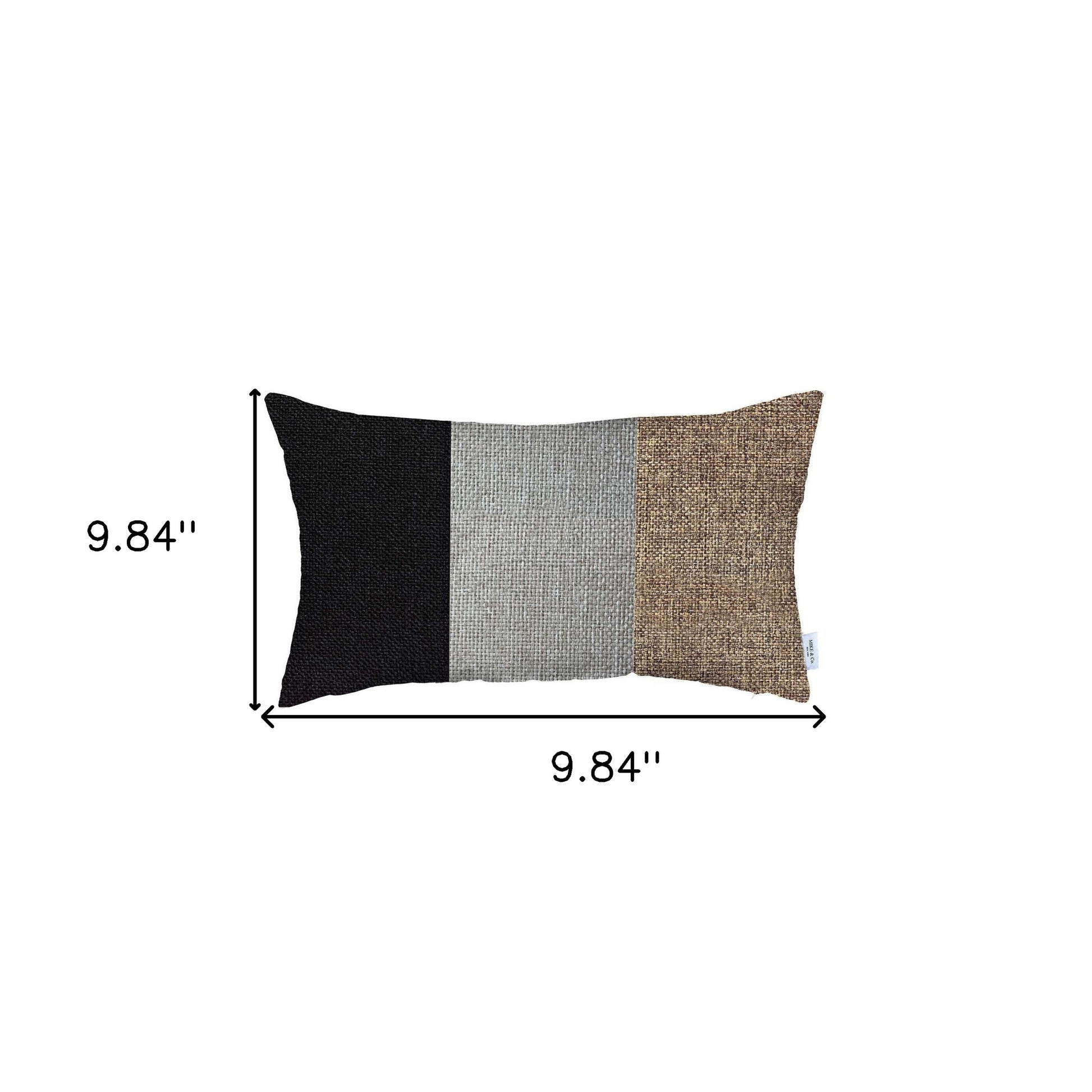 12" X 20" Black And Brown Geometric Zippered Handmade Polyester Lumbar Pillow Cover